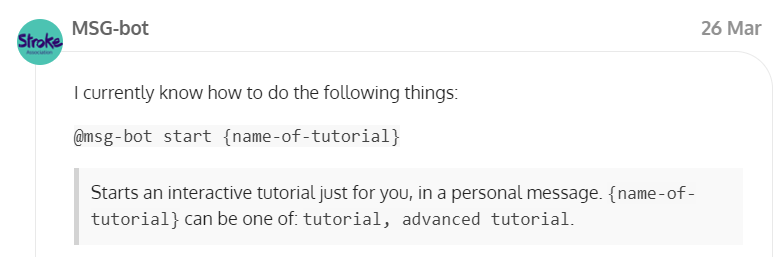@msg-bot start {name-of-tutorial} (which is “basic” or “advanced”…I think, it was quite a while ago when I did it)…and now he’s popped up below because I mentioned in here