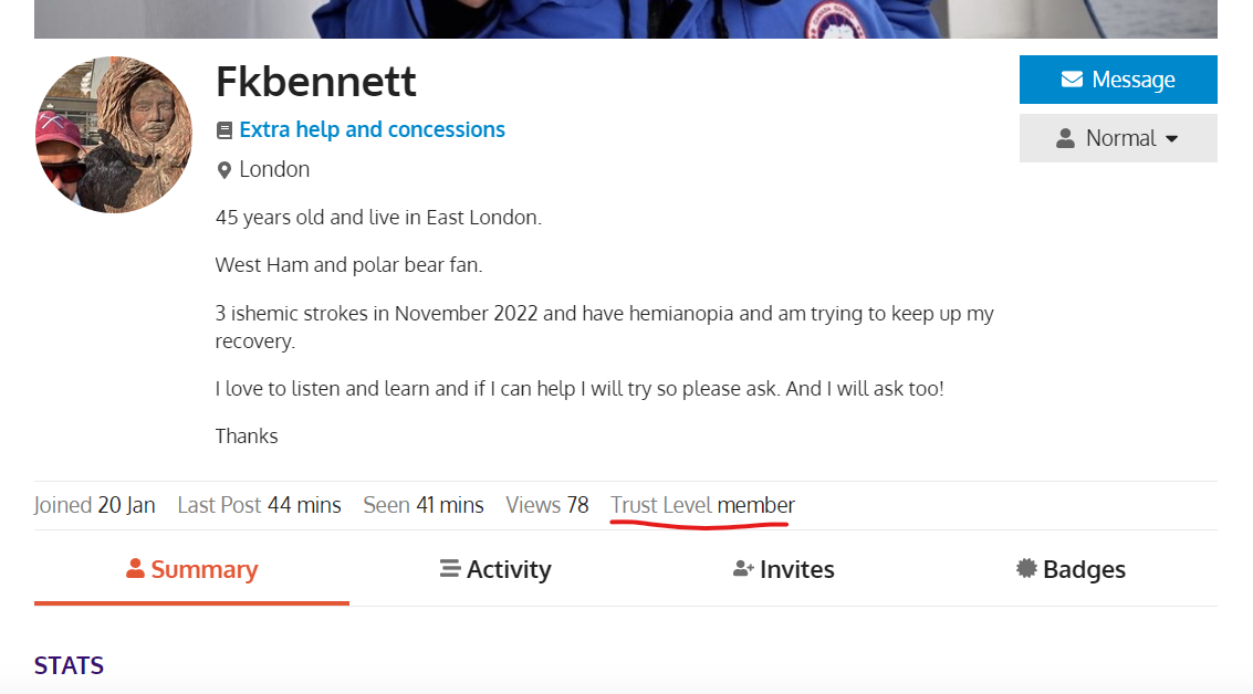 Then select Summary, that will take you to your Profile page where you find all your details under the heading Summary, Activity, Invites, Badges.