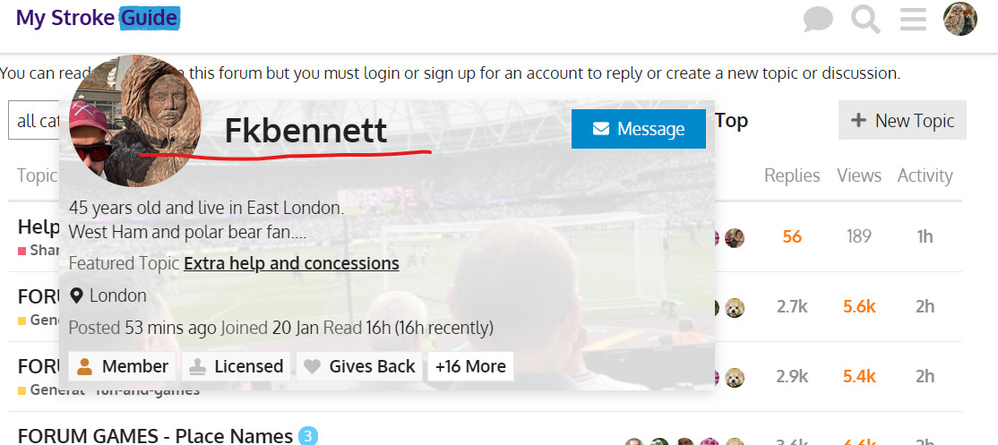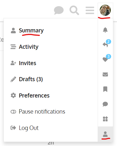 Alternatively, if you click on your avatar on the home page or within a post you’ve entered a reply in, you will get this:
