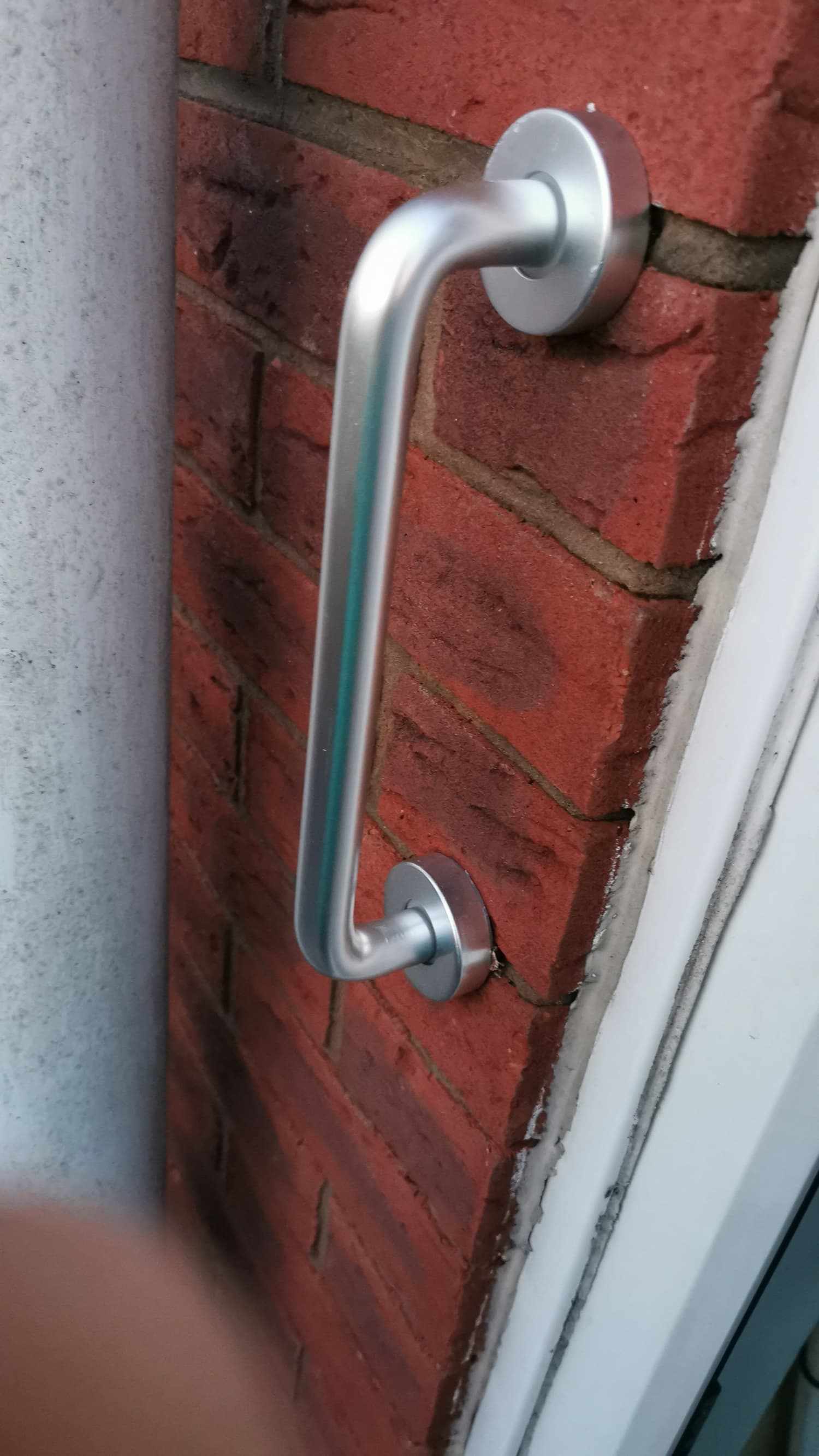 Fitted a grab rail outside back door, drilled, plugged and screwed into place usually it would take. me 10 mins, this took 25 mins, but it’s getting there