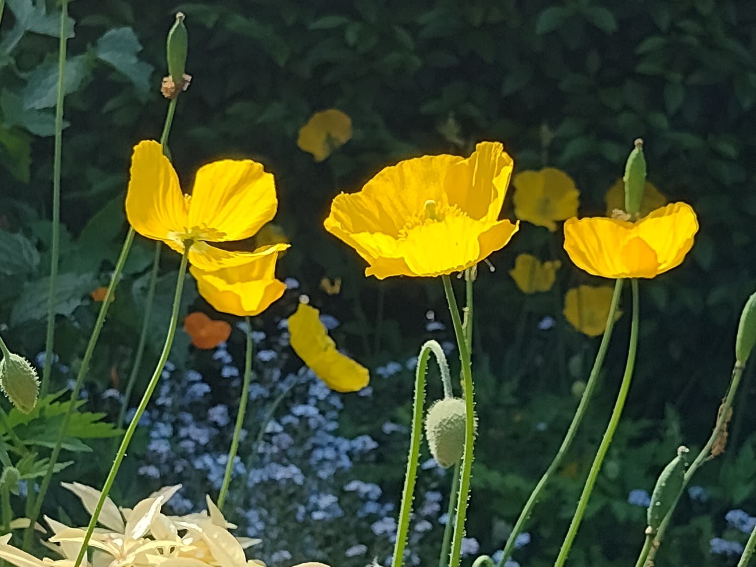 Not had time for much photography lately but here’s a pic of the Welsh poppies growing in our garden. Loads of lovely little blue forget-me-nots too at the moment. Also Peony and a lovely Rhubarb and Custard plant.