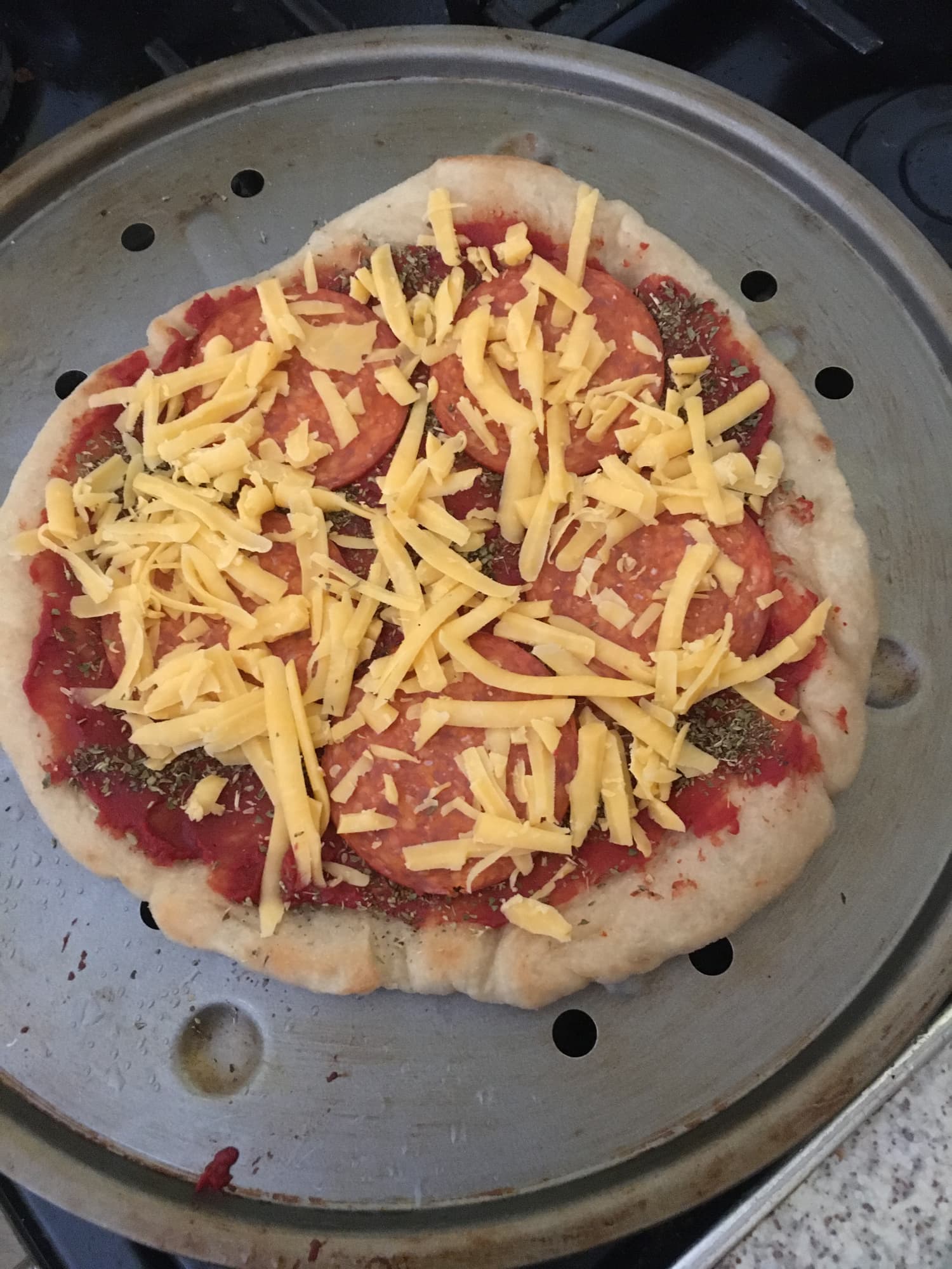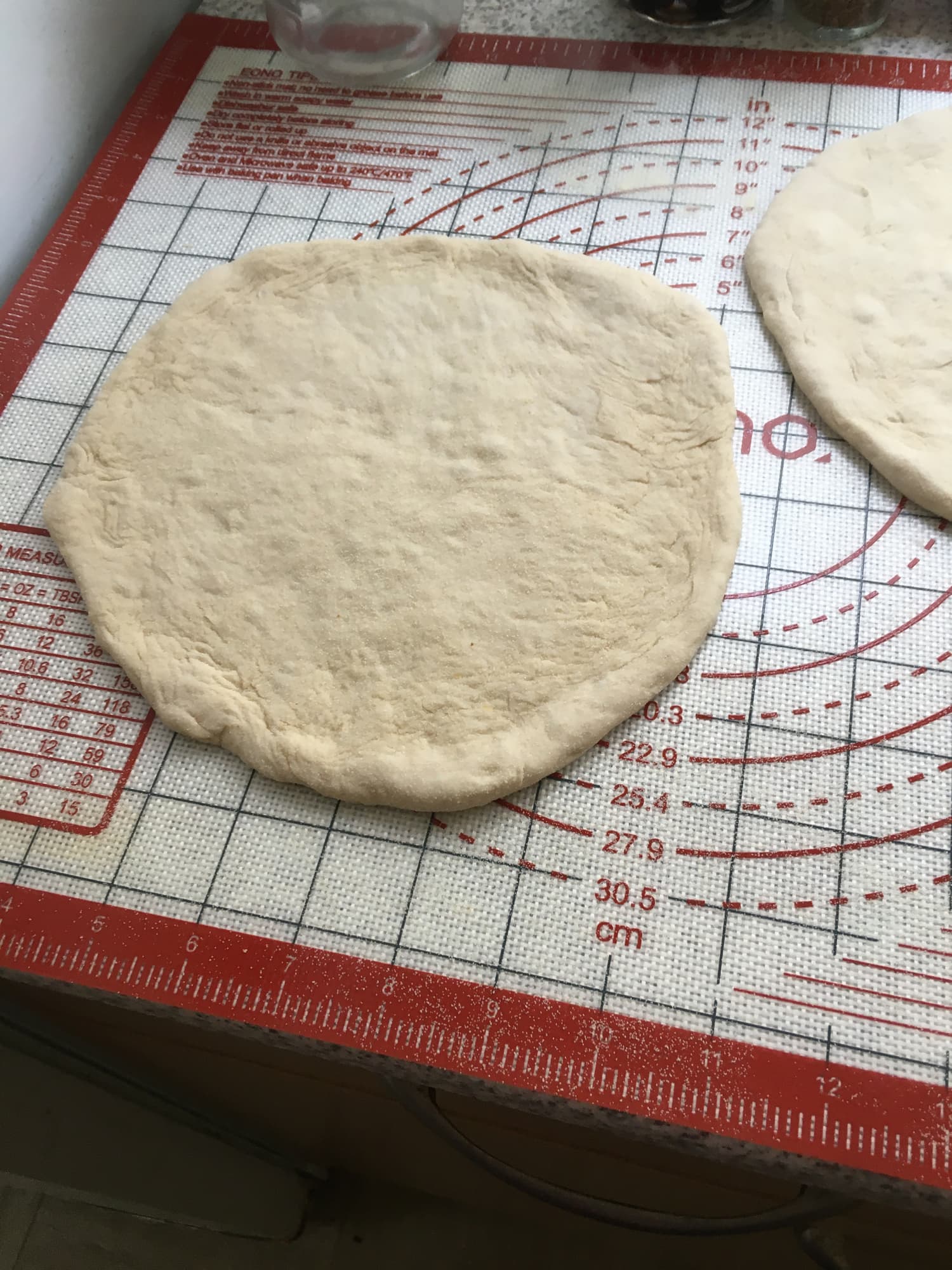 We’ve made these many times, they are enjoyable, economical and versatile. The dough is enough to make two 8 inch pizzas or one larger one. Sometimes we make two with different toppings on each. I suppose you could freeze the bases but we always eat them the same day.