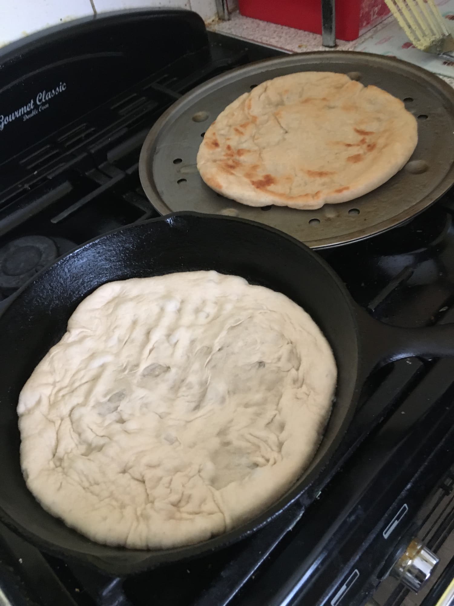 Once the hour is up a little oil is poured into a cast iron pan (though any frying pan would do).